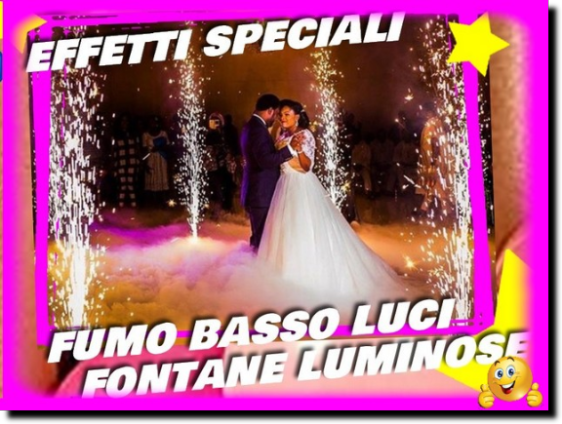 allestimento palloni ,doppia postazione musica(una per aperitivo/torta), intrattenimento musica, karaoke, show cabaret e magia, fumo basso e fontane luminose durante il primo ballo