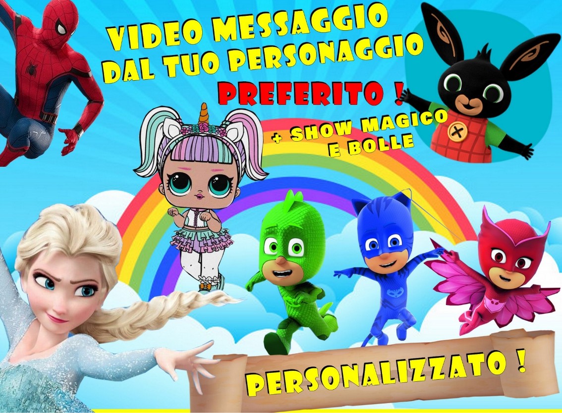 VIDEOMESSAGGIO D'AUGURI PERSONALIZZATO con: -Magia-bolle di sapone-auguri dal proprio personaggio preferito (durata circa 6 minuti. Costo 29 euro)